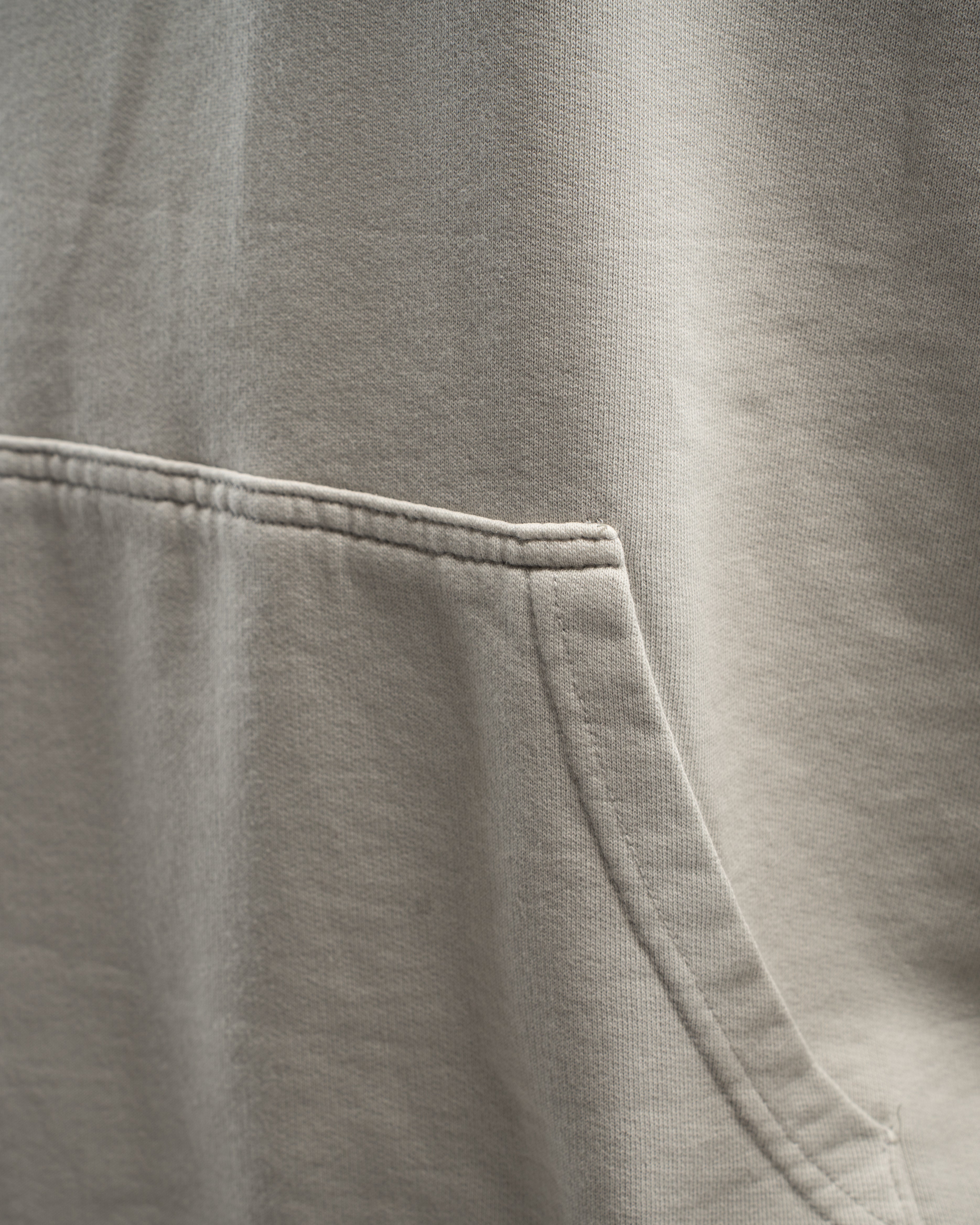El bolsillo canguro frontal aporta practicidad para el uso diario, manteniendo una estética limpia y coherente con el diseño oversize.